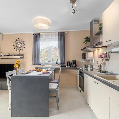 Dieses Apartment ist mit Selbstversorgereinrichtungen ausgestattet, darunter eine komplette Küche sowie eine Essecke und ein Essbereich im Freien, die die Gäste nutzen können. Diese Unterkunft verfügt über 8 Zimmer sowie Ausstattung zur Kaffee- & Teezubereitung. Die Restaurants Coctail Bar Peschiera und Konoba aba sind in einem Umkreis von 10 Gehminuten zu erreichen. Das Apartment liegt nur wenige Minuten mit dem Auto entfernt von der Bushaltestelle Porec.